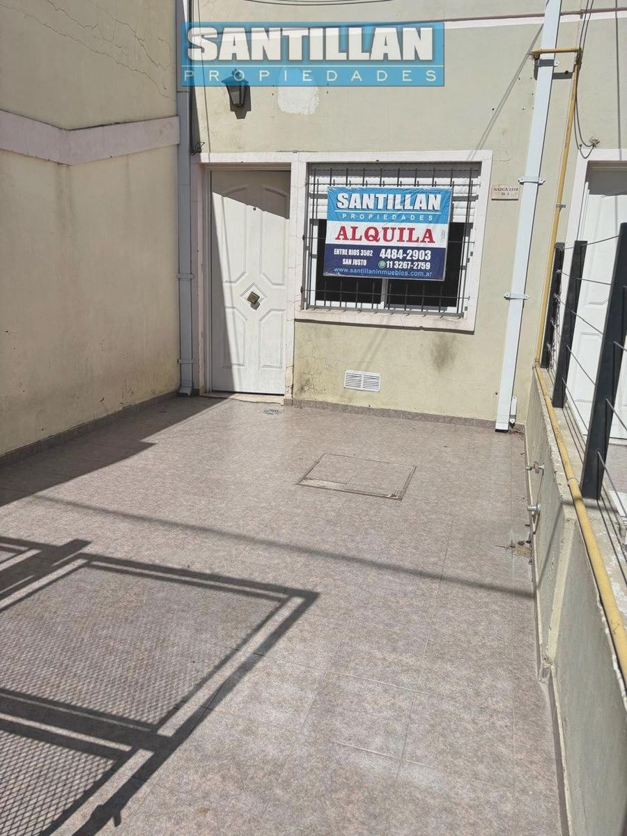 Código 484-1056 | Cómodo dúplex de tres ambientes con cochera en San Justo, sobre calle Nazca casi Berón de Astrada, a 1 y 1/2 cuadra de Avda. J.M. Rosas (Ruta 3). En PB: Cochera/patio, Living comedor con espacio de cocina integrado, baño completo y patio trasero con lavadero. En PA: Dormitorio principal con placard, segundo dormitorio con pequeño placard, y espacioso altillo para usos múltiples. Toilette. Sin mascotas. No paga expensas. Se requiere recibo de sueldo del inquilino y garantía propietaria. En caso de no contar con garantía propietaria, pueden aceptarse tres garantes con recibos de sueldos acordes. Contrato por dos años. Incremento trimestral s/I.P.C. PARA MAYOR INFORMACIÓN Y/O COORDINAR VISITAS: COMUNICARSE TELEFÓNICAMENTE CON LA INMOBILIARIA.